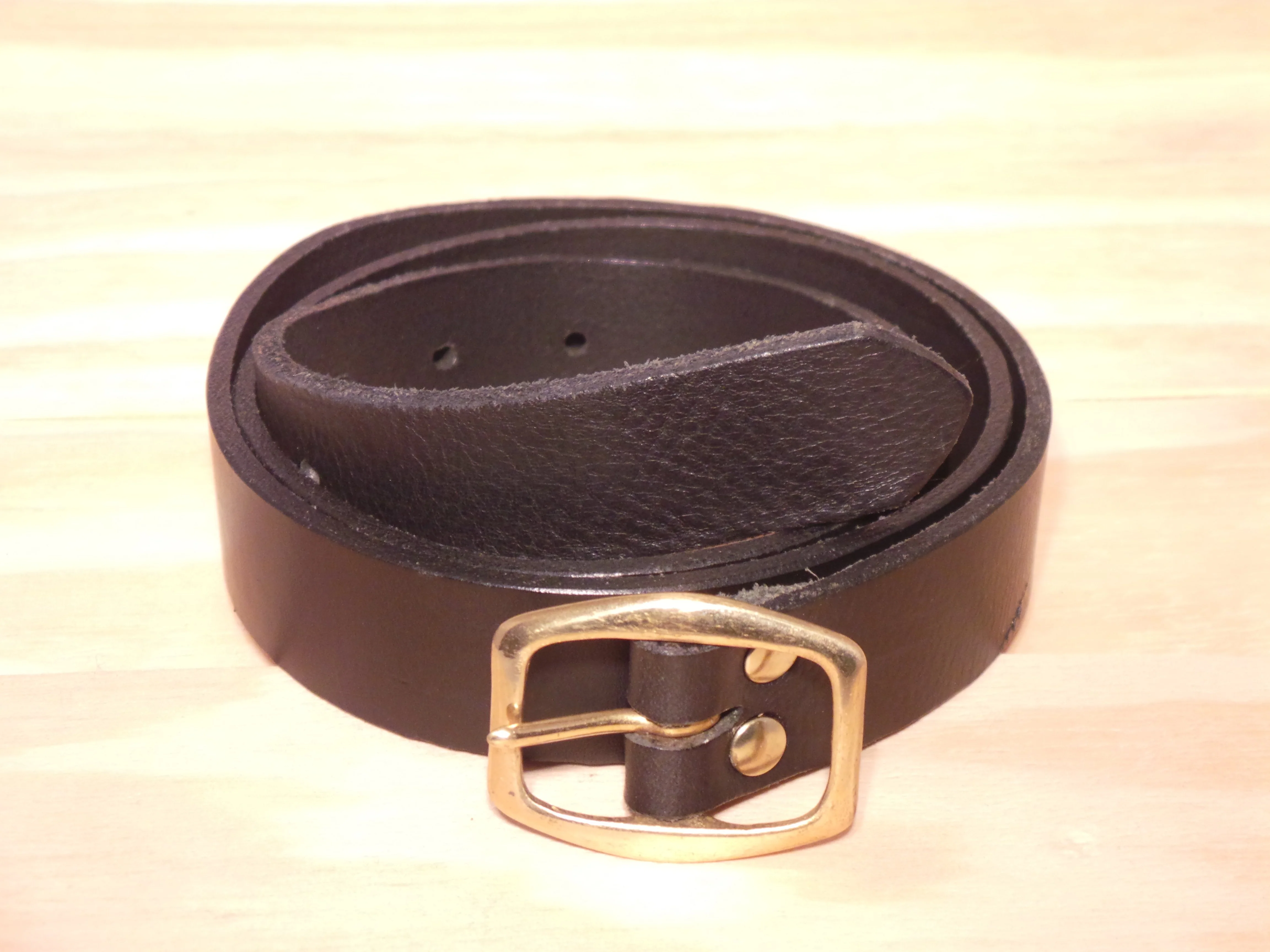 Buy 1 Inch Black Leather Belt with Brass Buckle